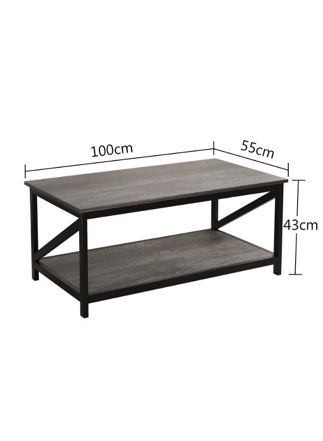 2-Tier Industrial Coffee Table, 100cm Wooden Low Table with Open Shelf Storage and Metal Frame for Living Room, Modern Center Table Simple Sofa Side Table for Home Office, CJ012 (Grey)