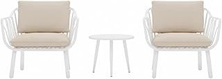 3-Piece Outdoor Bistro Set – Modern White Fiberglass Plastic Frame, 2 Chairs & Coffee Table – Weather-Resistant Balcony & Patio Furniture (Beige Cushions)