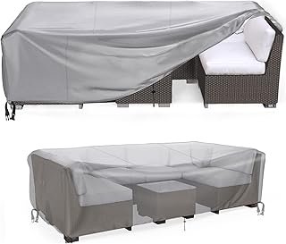 420D Heavy Duty Waterproof Outdoor Furniture Cover (84″ L x 52″ W x 29″ H), Premium Dustproof Anti-UV Patio Sofa Protector, Extra Thick Durable All-Weather Table & Chair Cover for Outdoor Use-Brown