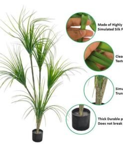 5ft Artificial Green Grass Plant, Lifelike Accent Artificial Plants with Pot, Nearly Natural Faux Plants with Adjustable Stems, Maintenance-Free & Long Lasting Fake Plants for Home Office Decor
