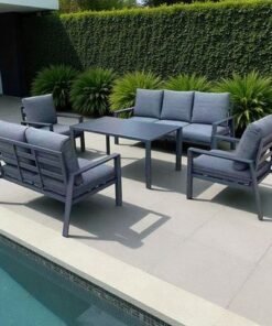 7-Seater Dark Grey Modern Aluminium Outdoor Sofa Set – Elegant, Durable & Comfortable