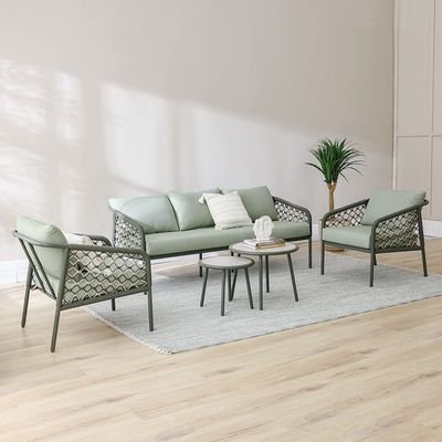 Aldrin 5-Seater SOFA SET-Green/White-With 1-Year Warranty