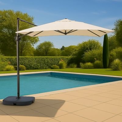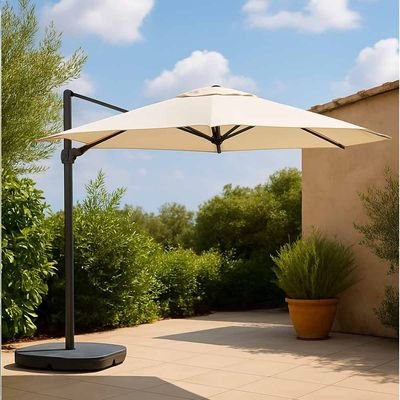 New Almira Umbrella with Cross Base – Beige – 3×3 M – With 1-Year Warranty