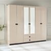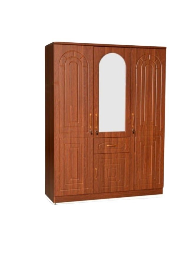 ALWASIT HOME 3Door Wooden Wardrobe Cabinet Cupboard Engineered Wood Modern Stylish Heavy Duty With Mirror Color Cherry