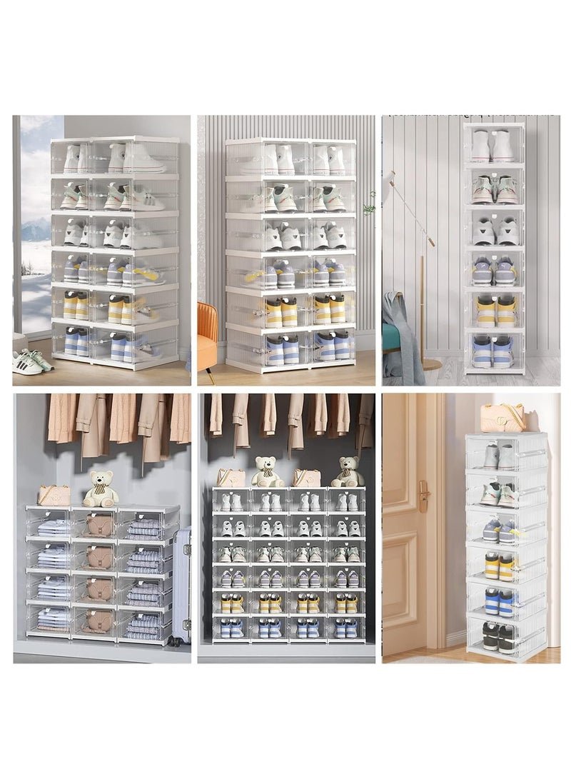 ARNOTEC Shoe Storage Organizer, Clear Installation-free Foldable Stackable Shoe Box Pack Shoe Rack, Portable Cabinet Rack (Transparent 6 Tier))