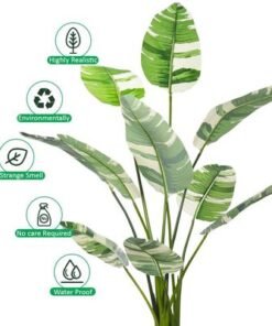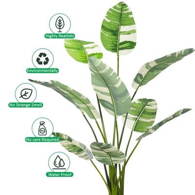 Artificial Banana Faux Plants, 145cm Ultra-Realistic Tropical Foliage Green Leaves Fake Plants with Flexible Stems, Fade-Proof, Pet-Friendly & Maintenance-Free Faux Trees Indoor Outdoor Decor