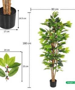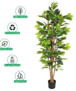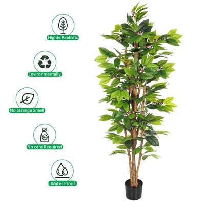 Artificial Coffee Plant, 180cm Schefflera Tree Nearly Natural Faux Plants with Flexible Stem & Pot, Maintenance-Free & Waterproof Green Leaves Fake Plants for Home, Office & Commercial Spaces