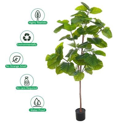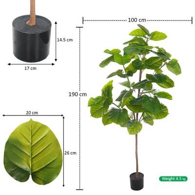 Artificial Fiddle Leaf Fig Tree, Realistic Green Leaves Fake Plants with Pot & Flexible Branches for Custom Arrangement, Long-Lasting & Maintenance-Free Faux Plant for Home Office Decor (190cm)