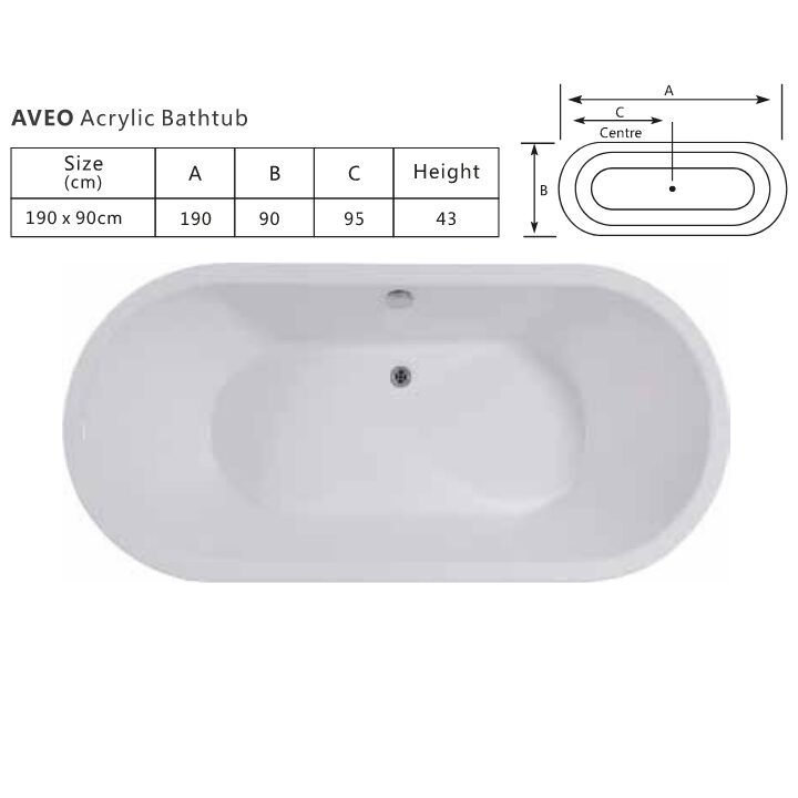 Aveo acrylic bathtub – elevate your shower room tub experience with a spacious 190cm dimension for unparalleled luxury