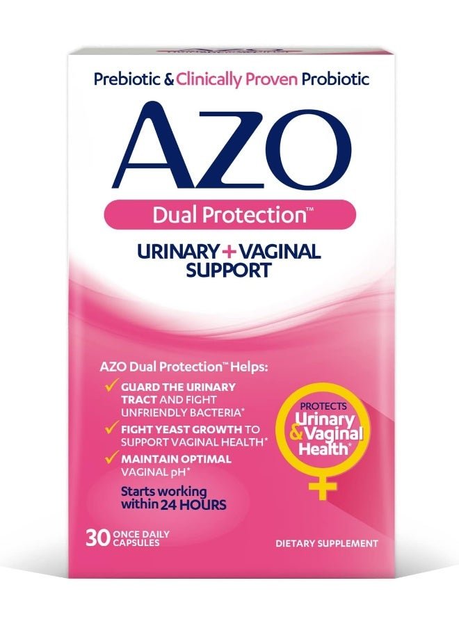 AZO Dual Protection | Urinary Support | Prebiotic Plus Clinically Proven Women’s Probiotic | Starts Working Within 24 Hours | Non-GMO | 30 Count