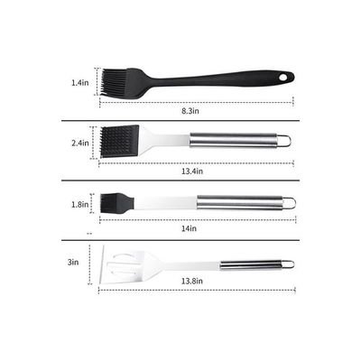 BBQ Grill Tools Set Heavy Duty Stainless Steel Barbecue Pastry Baking Utensils Set Kicthen Cooking Food Accessories Kit with Storage Case multicolour 38.5*5*10.5cm