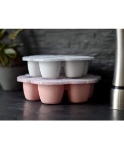 BEABA Silicone Multi – Containers, Premium – Quality For Baby, Extreme Heat Resistance, Oven And Microwave, 6 Separate Sections, Airtight Lid, Made In Italy, 6X150 Ml – Pink