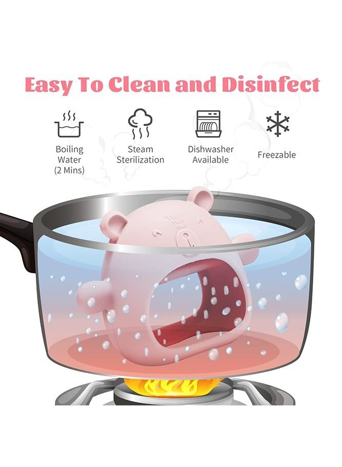 Bebiland Silicone Teething Mitten with Cute Bear Shape, BPA-Free and Anti-Drop Teether Toy for Baby Soothing Teething Pain Relief, Pink