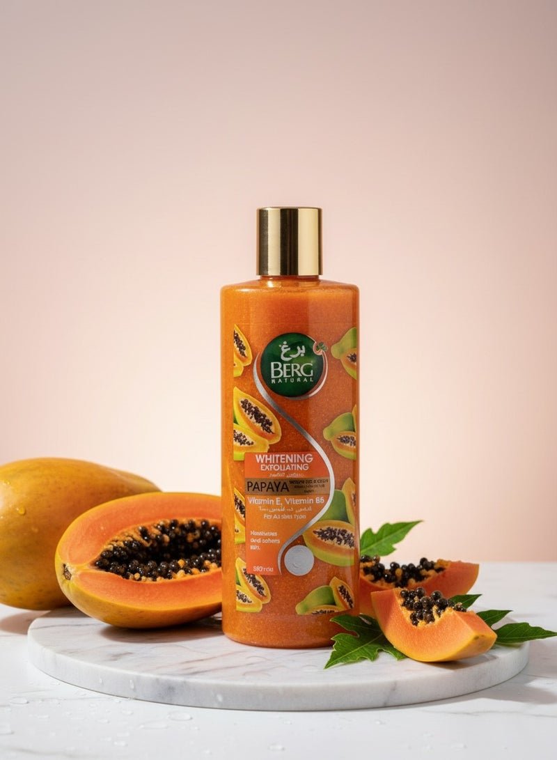 Berg Natural Brightening Papaya Exfoliating Shower Gel & Scrub – Vitamin B₆ & E for Smooth, Soft Skin (500 ml)