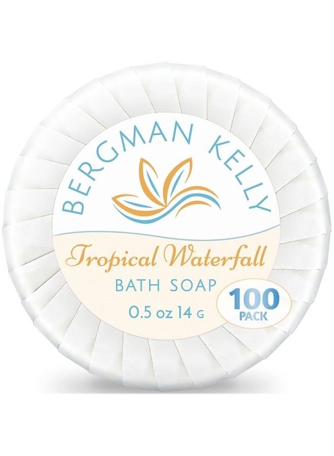 BERGMAN KELLY Hotel Soap Bars in Bulk (Tropical Waterfall, 0.5 oz, 100 PK), Small Individually Wrapped Round Soap, Travel Size Mini Toiletries for Airbnb, Motel, Guest Bathroom