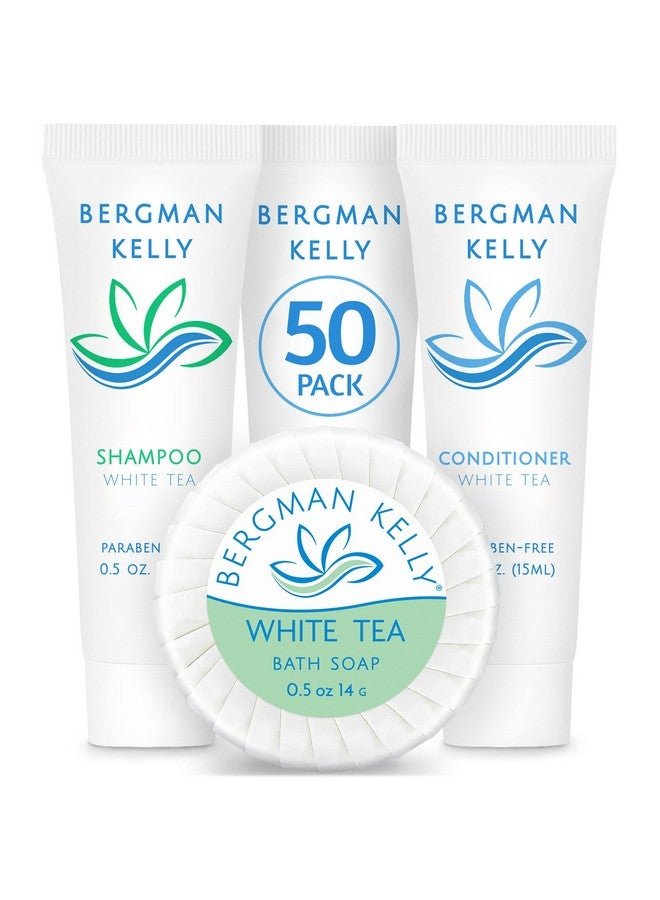 BERGMAN KELLY Round Hotel Soap Bars Shampoo & Conditioner 3Piece Set (0.5 Oz Each 150 Pc White Tea) Delight Your Guests With Revitalizing & Refreshing Mini Travel Toiletries & Bulk Amenities