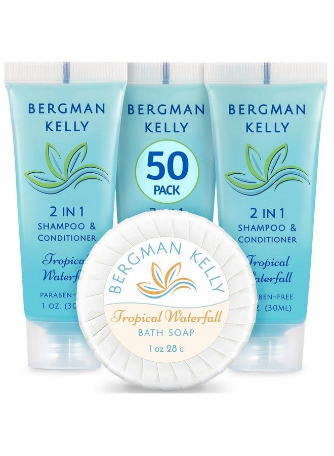 BERGMAN KELLY Round Soap Bars 2In1 Shampoo & Conditioner 2Piece Set (Tropical Waterfall 1 Oz Each 100 Pc) Delight Your Guests With Revitalizing & Refreshing Sanitary Toiletries & Hotel Amenities