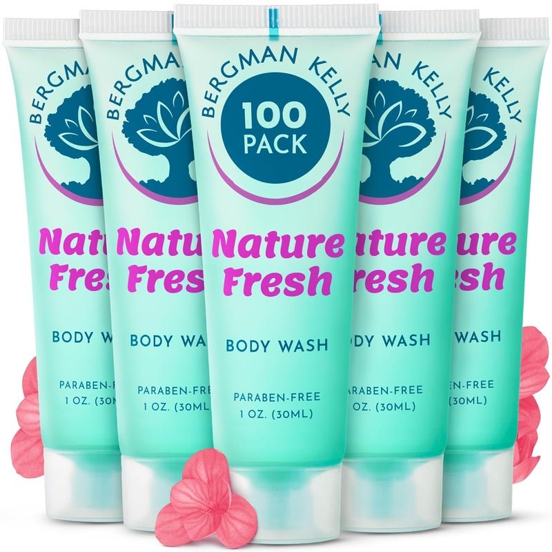 BERGMAN KELLY Travel Size Body Wash (1 fl oz, 100 PK, Nature Fresh), Delight Your Guests with a Refreshing & Soothing Hotel Body Wash, Quality Mini and Small Size Guest Hotel Toiletries in Bulk