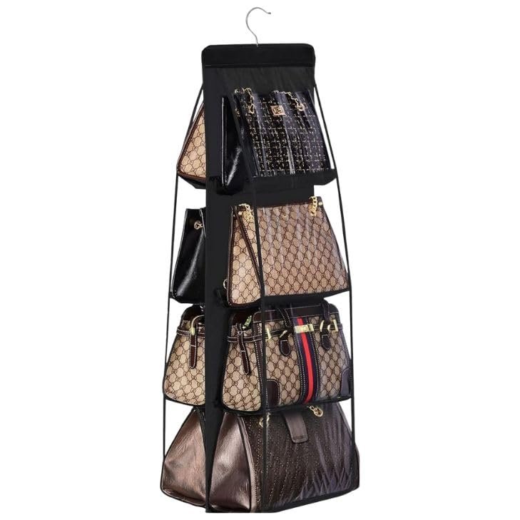 BRXOO Hanging Handbag Purse Organizer | 6 Pocket Dustproof Closet Storage | Foldable & Washable Handbag Holder | Wardrobe Organizer | Space Saving Design (8 Pocket- 1 Pcs-Black)