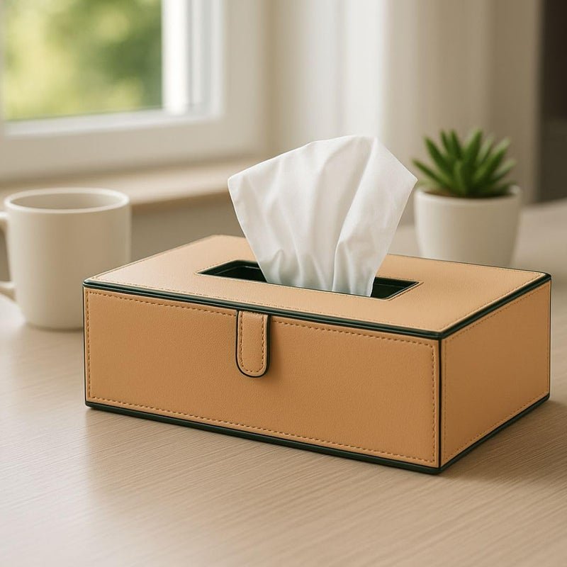 CASA BOTANICAL Leather Tissue Box Holder | Paper Napkin Holder Case | Tissue Holder Dispenser Organizer for Car Decor Home Room Hotel Beige 1pc Rectangular Shape Box
