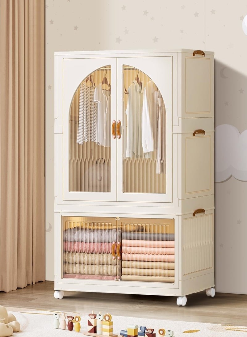 Roman Gifts Portable Fabric Canvas Wardrobe With Storage Cupboard Organiser Beige