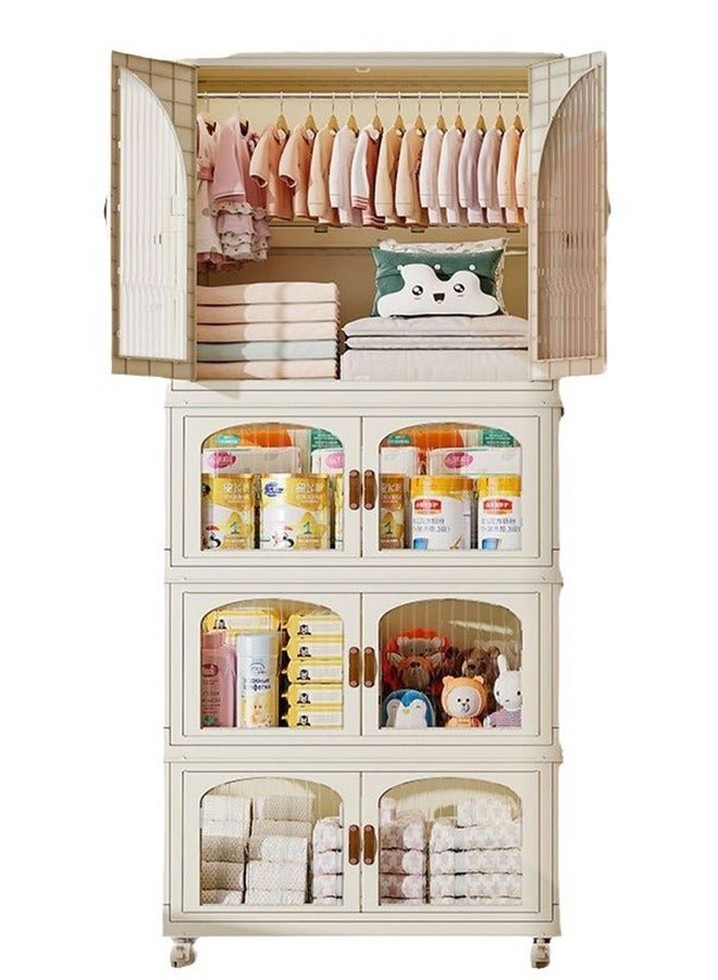 CityRiya-Long Kids Wardrobe Baby Closet Storage Organizer Portable Children Clothes Cabinet Storage Rack Toddler Dresser with Hanging Rod and Wheels for Boys Girls Clothing Nursery Armoire White