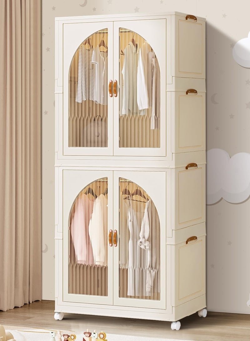 CityRiya-Long Kids Wardrobe Baby Closet Storage Organizer Portable Children Clothes Cabinet Storage Rack Toddler Dresser with Hanging Rod and Wheels for Boys Girls Clothing Nursery Armoire White