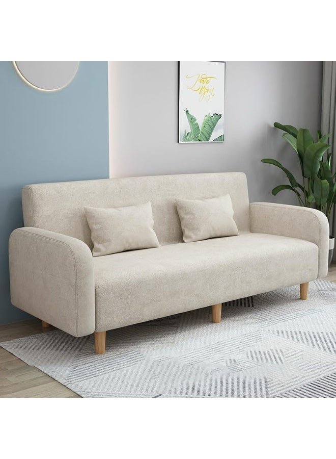 Comfynest Seats 3 Modern Small Solid Wood Frame Foam Filled Sofa With Square Arm – Flannel 150 X 65 X 75 Cm Beige