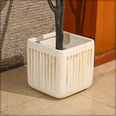 Concrete Planter Pot, Modern Square Plant Pot with Vertical Grooved Design & Drainage Hole, Lightweight & Weather-Resistant Pot for Plant, Flower Pot for Home Office Event Commercial Use (L)