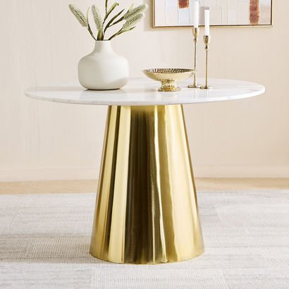 Cone 4-Seater Round Genuine Marble Top Dining Tabl…