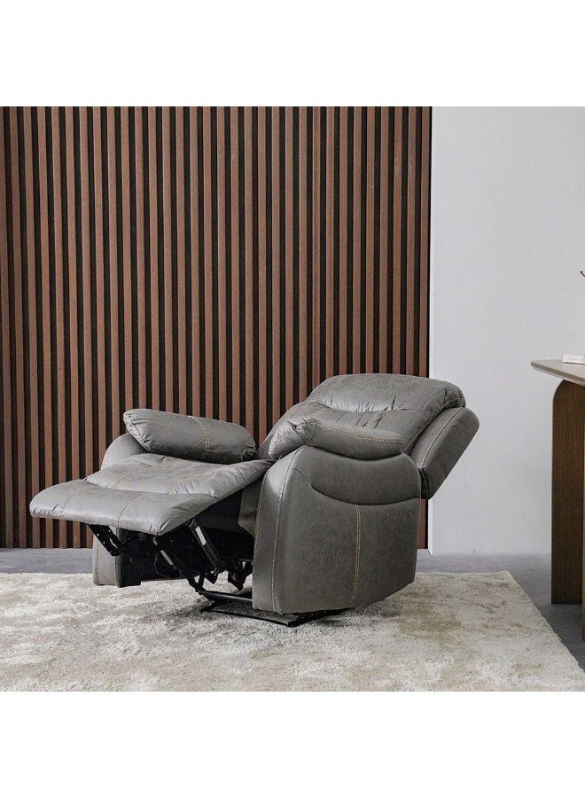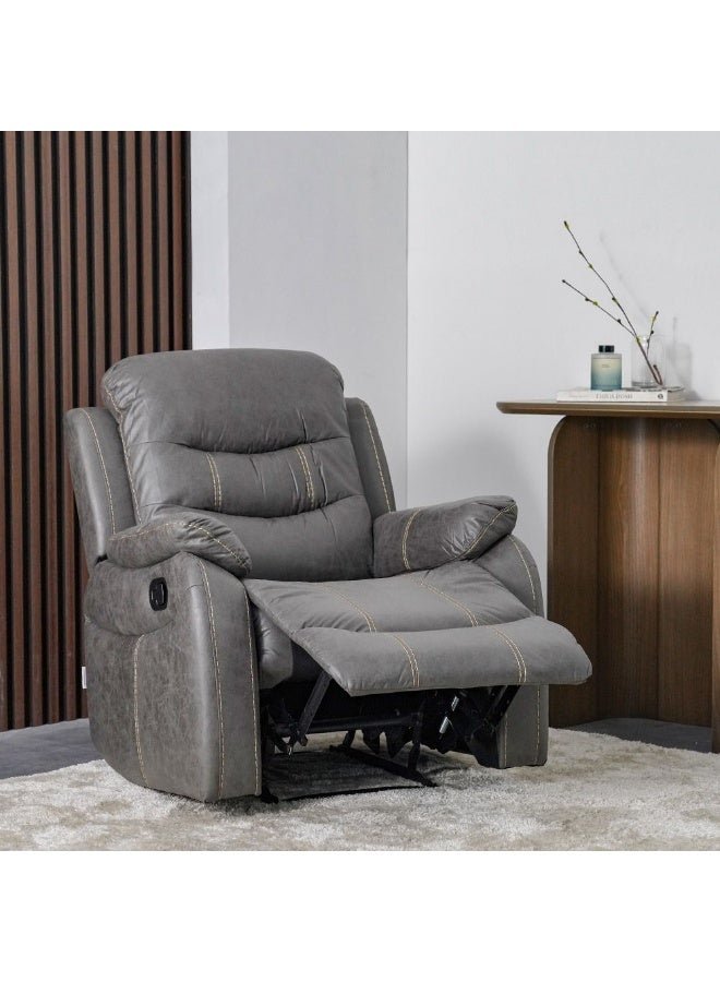 DANUBE HOME Adric Recliner Faux Leather Sofa Accent Relaxing Chair Metal Leg Single Seater Modern Design Living Room Furniture Dark Grey Dark Grey 82x80x98cm