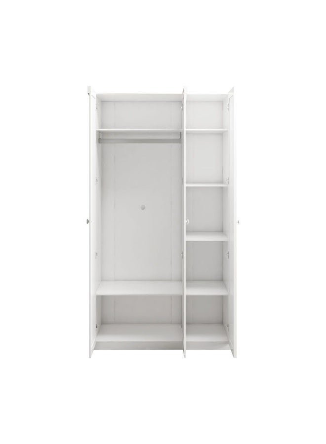 DANUBE HOME Calm 3 Door Wardrobe With Mirror Extra Sturdy Closet, Clothes Storage Cupboard Modern Design Space Saving Swing Door Cabinet For Bedroom L120xW59.6xH225cm – White