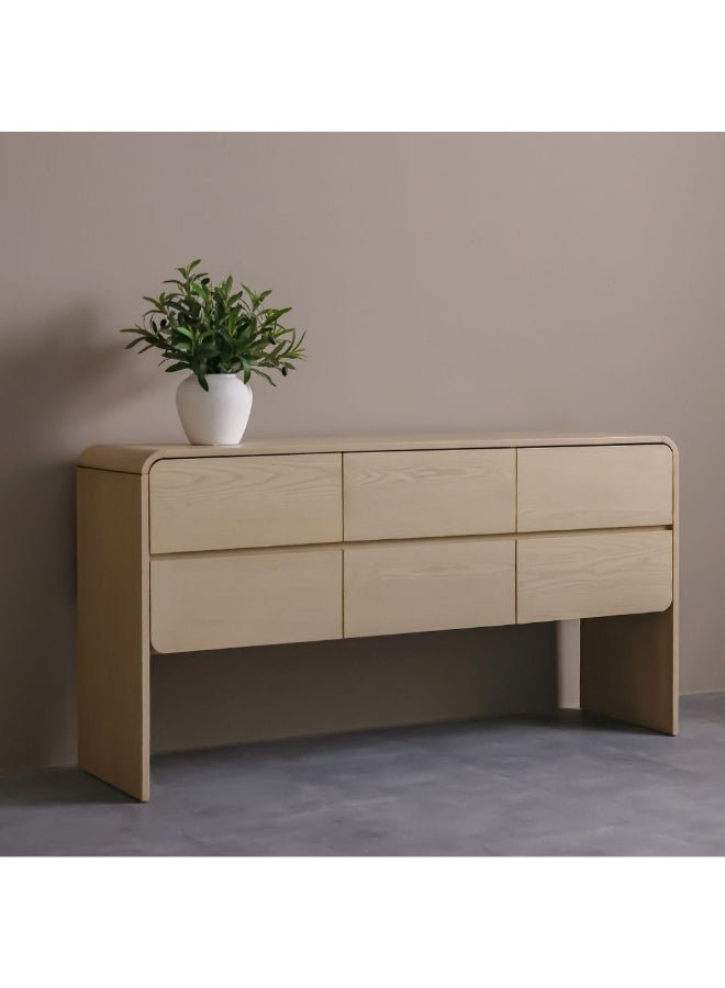 DANUBE HOME Cassie 6 Drawer Wide Dressing Cabinet Durable Vanity Table Dressing Makeup Desk With Storage Modern Design Bedroom Furniture L 160 x W 45 x H 84.5 cm-Natural/Ashwood