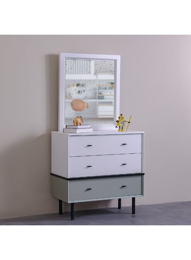 DANUBE HOME Petra 3-Drawer Dresser with Mirror – Stylish White & Grey Bedroom Storage Furniture, Engineered Wood, Melamine Finish, Ideal for Organizing Clothes – Size: L164.8xW43xH85.2cm