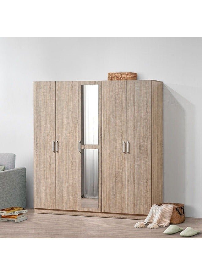 DANUBE HOME Supreme 5-Door Wardrobe With Mirror For Hanging Clothes Extra Sturdy Rack Storage Organiser Modern Design Space Saving Cabinets For Bedroom – French Sonoma Oak
