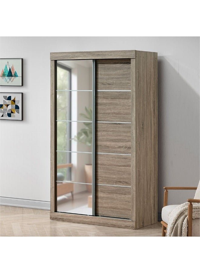 DANUBE HOME Supreme New 2Door Compact Sliding Door Wardrobe With Mirrors | Sturdy Closet Clothes Storage Cupboard | Modern Design Space Saving Cabinet For Bedroom L121xW57.5xH210cm-French Sonoma Oak