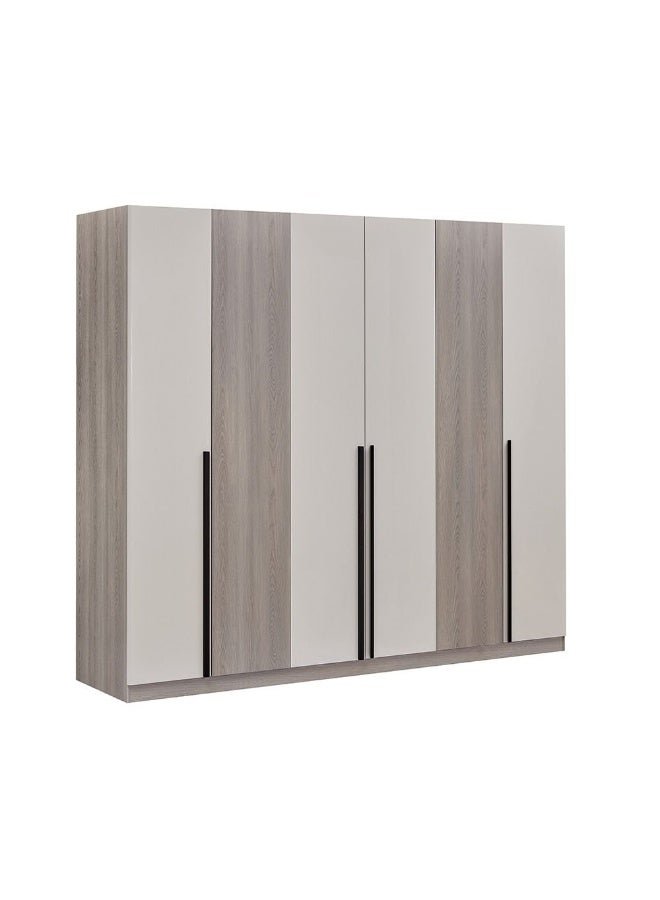 DANUBE HOME Trevor 6 Door Wardrobe Spacious Wooden Wardrobe with Multiple Compartments Stylish Storage Cabinet for Bedroom Closet Organizer for Home Modern Wardrobe Furniture Beige / L. Grey