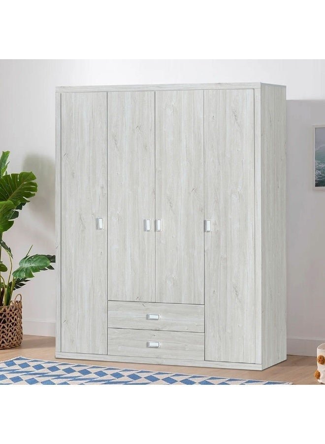DANUBE HOME V2 Tisley 4 Door Wardrobe Extra Sturdy Closet Clothes Storage Cupboard Modern Design Space Saving Swing Door Cabinet For Bedroom L160Xw55Xh201.5Cm – L.Oak/White Faux Marble