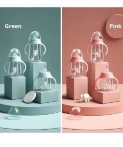 DIOTTI Baby bottles Drinking Cup,Sippy Cups for 6+ Months Baby, Baby Cup 300ml Weighted Straw& Easy-Grip Handles Multifunctional Drinking Milk Drinking Water Dual-use Bottle BPA Free (Pink)