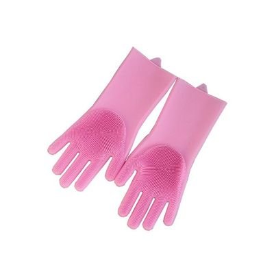 Dishwashing Gloves With Sponge Scrubbers Rose Pink 35.7 x 16.5centimeter