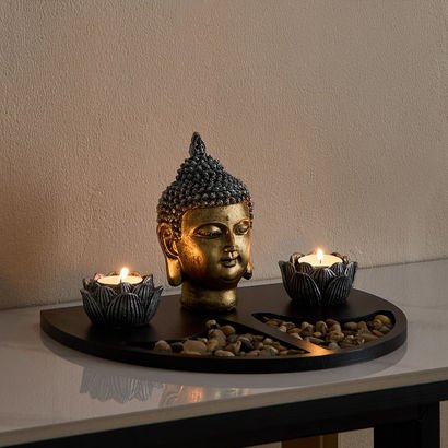 Divinity Glacier Polyresin Buddha with MDF Wooden …