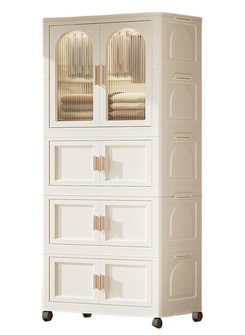 Roman Gifts Portable Fabric Canvas Wardrobe With Storage Cupboard Organiser Beige