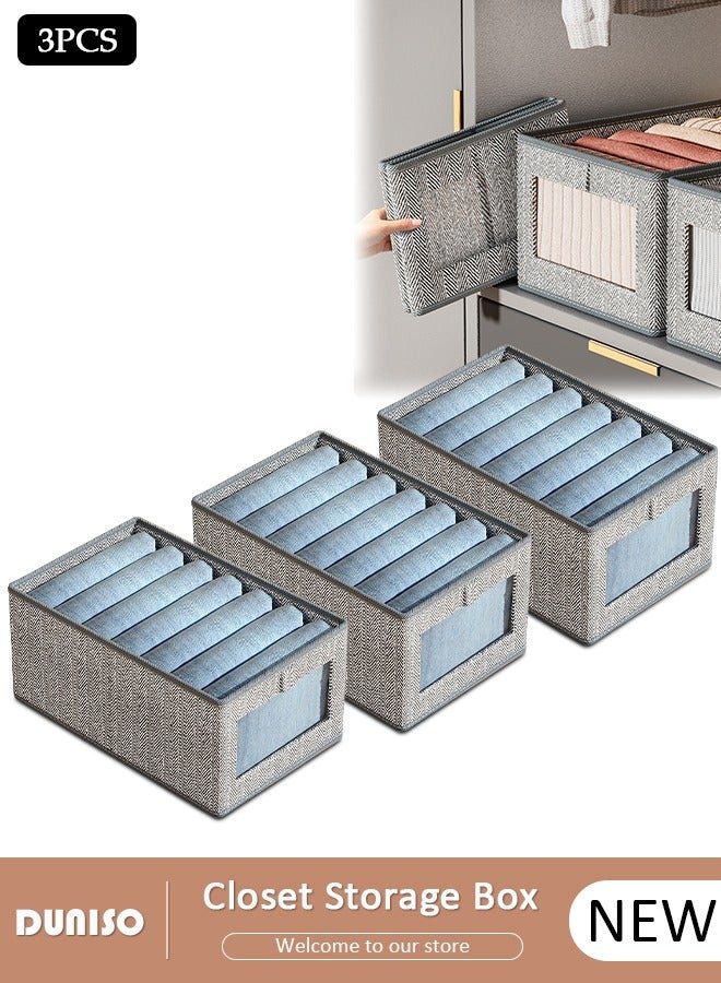 DUNISO 3 Pieces Fabric Closet Storage Organizer Set Foldable Clothes Boxes Large Capacity Wardrobe Stackable Closet Drawer with Handle for Leggings Stockings Socks Underwear