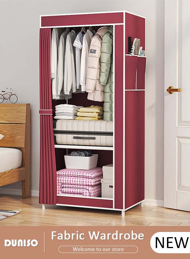DUNISO Foldable Fabric Wardrobe, Multi-Functional Dustproof Storage Cabinet,Dustproof Deisgn, Quick and Easy to Assemble ,Portable Closet Organizer with Non-woven Fabric For Bedroom, Dorm, Apartment