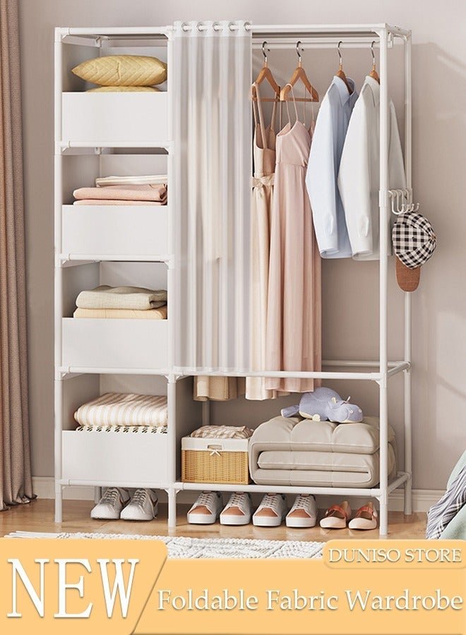 Roman Gifts Portable Fabric Canvas Wardrobe With Storage Cupboard Organiser Grey