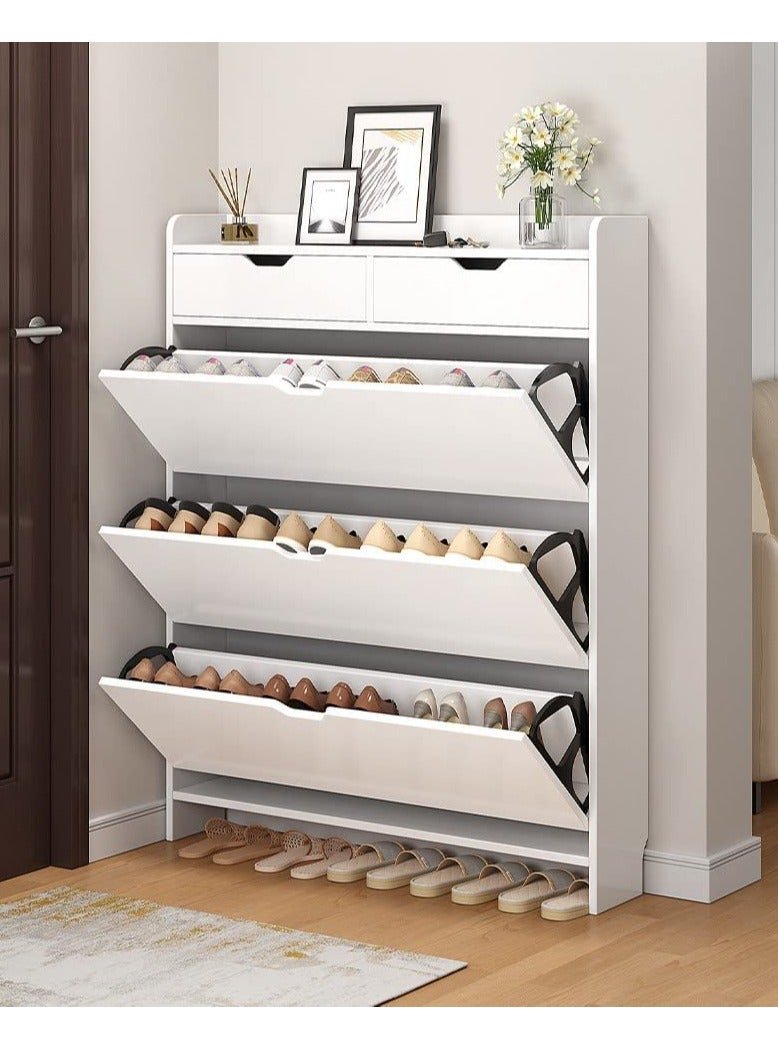 DUSALA 3 Tiers Shoe Cabinet With 2 drawers Cupboard Shoe Storage Organiser Pull Down Wooden Furniture Unit White