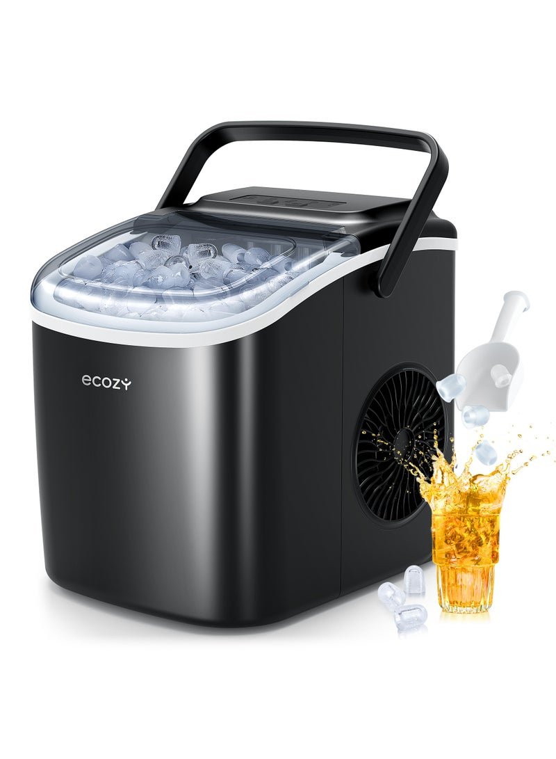 ecozy Portable Countertop Ice Maker – 9 Ice Cubes in 6 Minutes, 12 kg Daily Output, Self-Cleaning with Ice Bags, Scoop, and Basket for Kitchen, Office, Bar, Party – Black