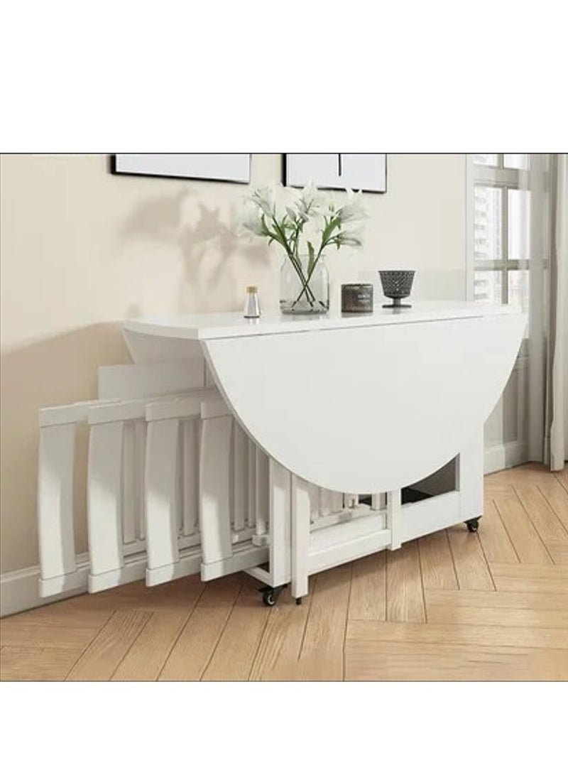 Eleva Home Foldable Dining Table Set with 4 chairs, 1 Storage Space, Space Saving for Home Living Room and Kitchen, Round White