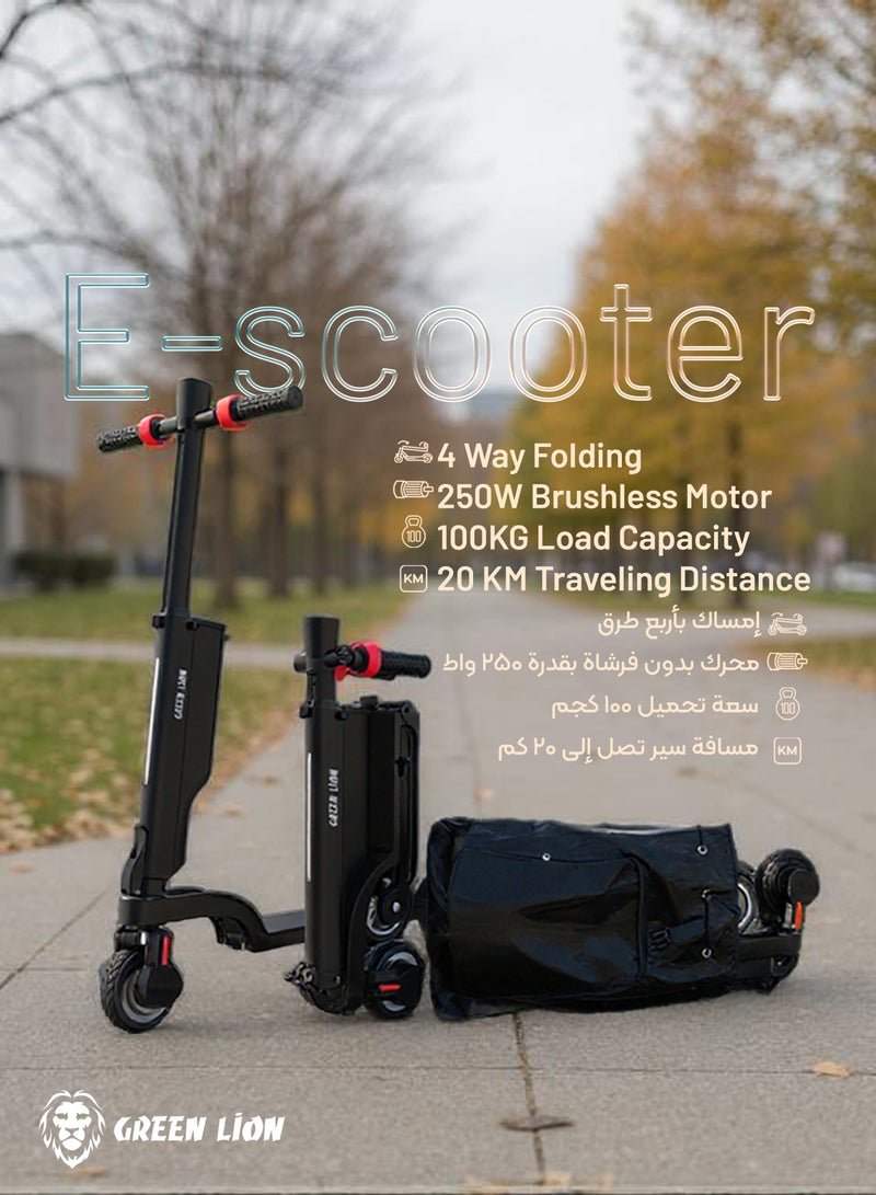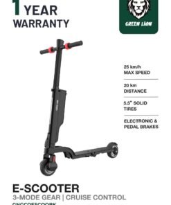 GREEN LION E-Scooter Compact / 4Way Folding / Cruise Control / 3 Mode Gear / 250W Efficient Motor / Electronic and Pedal Brakes / Headlight / 15° Climbing Angle / 100kg Load / Foldable Electric Scooter – Black