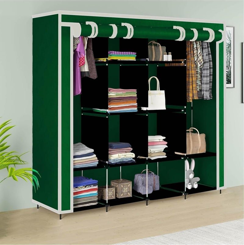 GTC Collapsible Wardrobe Clothes Almira, 2 Hanging Space, 12 Shelves, 1 Side Pocket Non-Woven Fabric (W 88270)